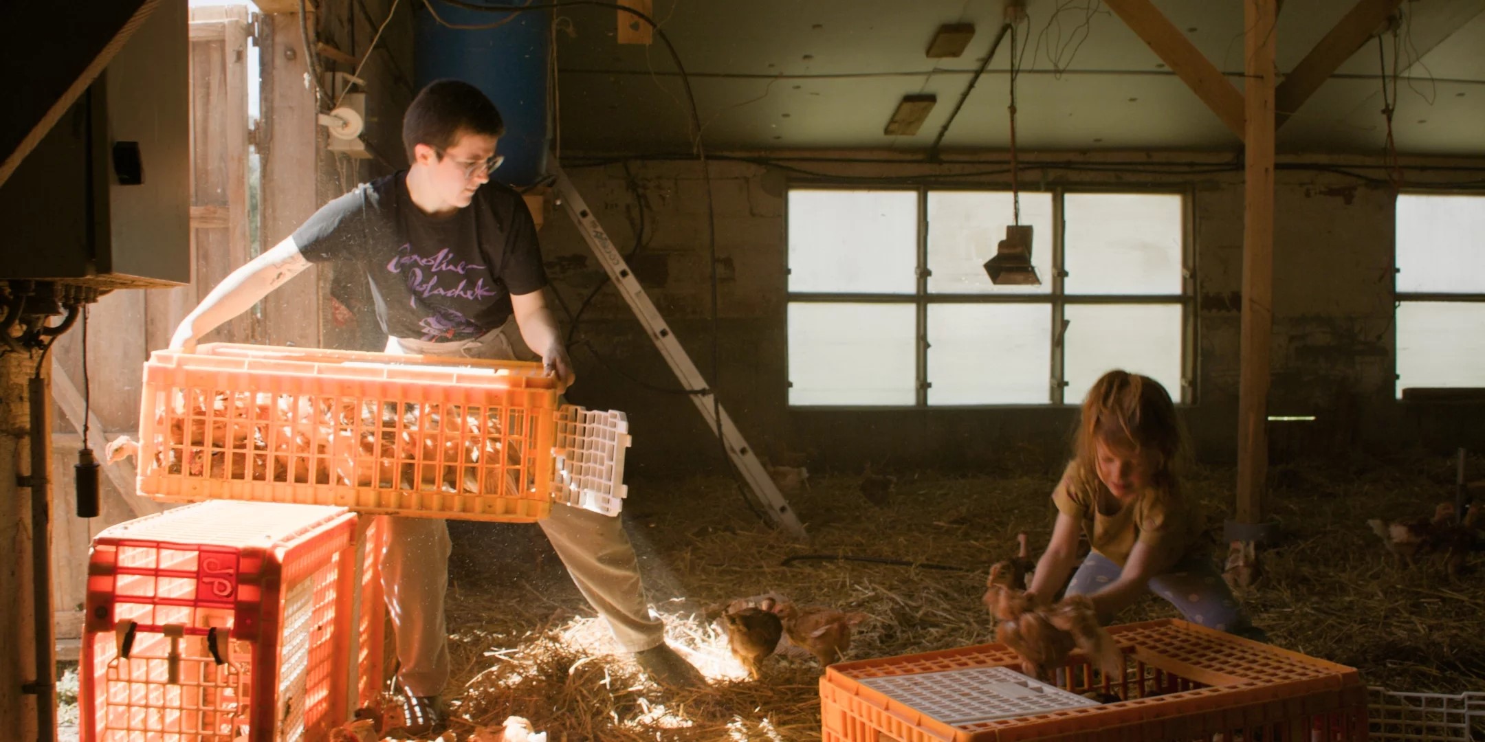 De son père, aviculteur, fermier modeste dans le Périgord, coincé entre ses volailles, poulets, dindes et pintades, en une époque où l’on compte dans le milieu rural deux suicides par jour, elle n’en pouvait plus. Il était conservateur, elle tendait vers d’autres horizons, raison pour laquelle elle était partie faire des études de cinéma à Bruxelles, au plus loin de lui. Jusqu’au jour où il lui annonça sa maladie : qui reprendra ensuite l’exploitation familiale ? C’est elle qui s’en chargera, revenue au pays, avec sa caméra. Le film raconte cet exploit, celui d’une cinéaste contrainte de devenir fermière alors qu’elle n’en avait pas le moindre goût. Élever au grain, c’est mon coup de foudre, et je ne suis pas le seul à le penser : rares sont en effet les films capables d’aborder à ce point des sujets graves avec autant d’humour, de présence corporelle et de légèreté. Patrick Leboutte